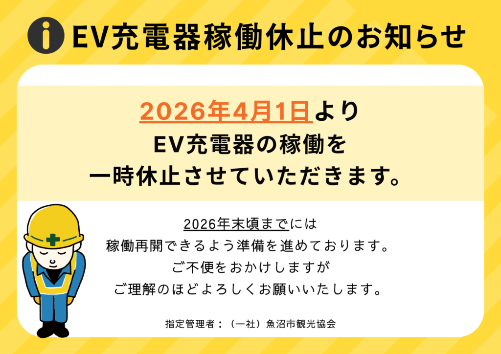 EV充電器稼働休止のお知らせ